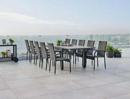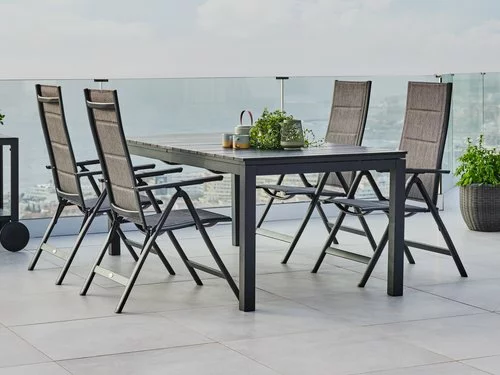 | Material | Ställning: Aluminium, Bordsskiva: Konstträ (polystyren)Konstträ är ett underhållsfritt, syntetiskt material med naturlig trälook. Det är tillverkat av plast, såsom polystyren, som ger ett slitstarkt och väderbeständigt material. Konstträ är UV-skyddat, vilket säkerställer en färgbeständig yta., Ben: Aluminium |
