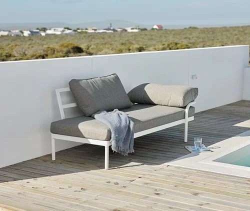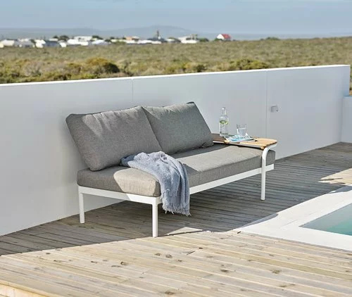 Aluminium och FSC® hårdträ. Inkl. exklusiva dynor med slitstarkt, strukturvävt överdrag. B181 x H71 x D87 cm