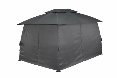 Stålram med vattentålig polyesterduk. Vattenpelartryck 600 mm. Vikt 55 kg. Inkl. avtagbara paviljongväggar och insektsnät. B3 x L4 x H2,65 m