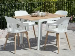 JUTLANDIA RAMTEN L75 Bord Hårdträ + 4 RAVNEBAKKE Stol Vit