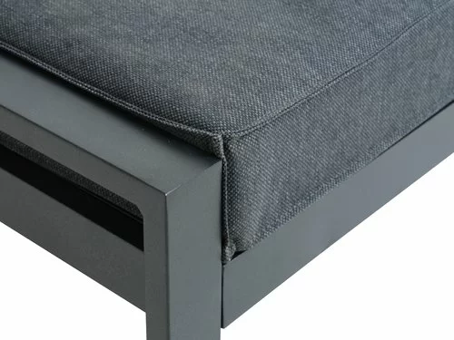 Aluminium. Inkl. exklusiv dyna med snabbtorkande, strukturvävt överdag. Överdraget har ett vattentätt skikt på insidan, som hindrar vatten från att komma in i dynan. B75 x L210 x H107 cm