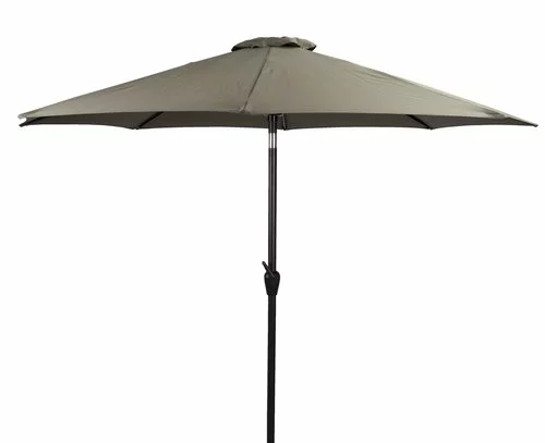 Vattentålig, UV-skyddad polyesterduk och aluminiumstång. Med tiltfunktion, handvev och ventilation. Ø300 x H246 cm