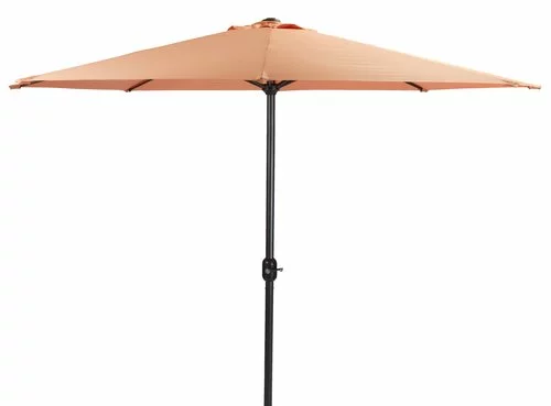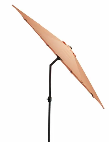 Vattentålig, UV-skyddad polyesterduk och aluminiumstång. Med tiltfunktion, handvev och ventilation. Ø300 x H246 cm
