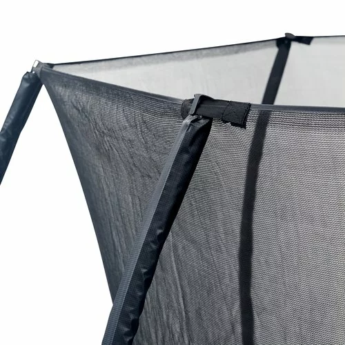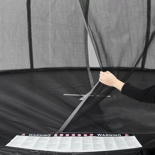 | Studsmatta funktioner | Säkerhetsnät H182 cm, Överlappande, självstängande ingång, 1,7 cm tjock UV-beständig kantdyna med skumkärna och slitstarkt gummiöverdrag, Stänger med skumstoppning och slitstarkt gummiöverdrag, 80 galvaniserade stålfjädrar, Galvaniserad stålram, Väderbeständig hoppmatta |